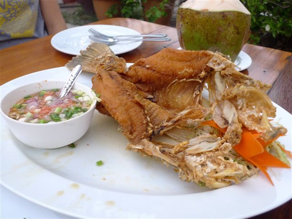 炸魚佐酸辣醬...那個魚很鮮喔~搭配開胃的酸辣醬讓我們把這於清光光